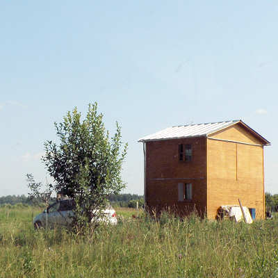 первые ласточки: садовый домик и автомобиль в кустиках, на котором можно доехать до этого домика