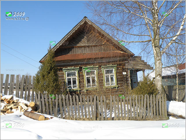 Зеленый домик 43 с сенями справа. Черсево Гусь-Хрустального района Владимирской области.