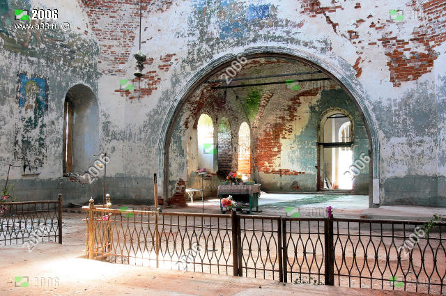 Интерьер церкви Иоанна Предтечи в урочище и на действующем кладбище Куземский погост Меленковского района Владимирской области. |