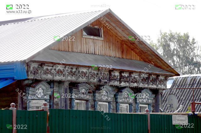 2022 Деревянные наличники дома 21, улица Центральная, деревня Погребищи Судогодского района Владимирской области.