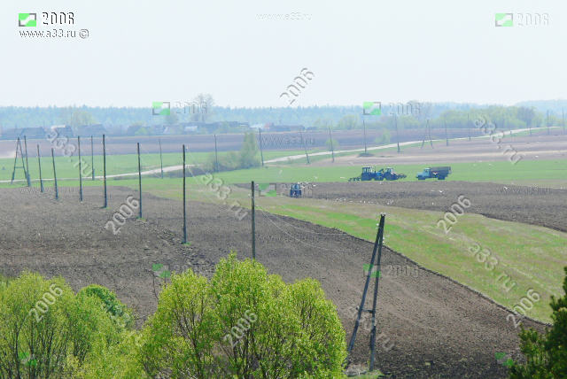 Весенний сев на полях в окрестностях деревни Райки Судогодского района Владимирской области.