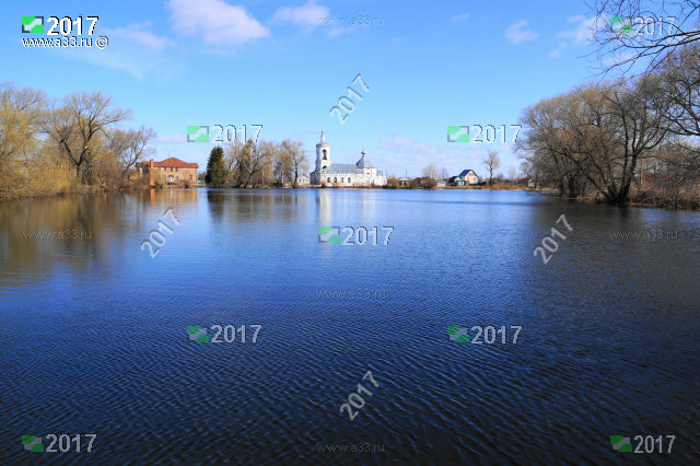Панорама запруды на ручье Мжара и церкви Николая Чудотворца в селе Черниж Суздальского района Владимирской области. |