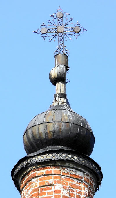 Строилась частями: сначала тёплая трапеза, затем главный холодный храм (1821).