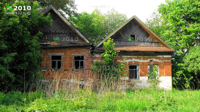 Сдвоенные нежилые каменные дома в деревне Копцево находятся в густых зарослях между жилыми домами 31 и 33.