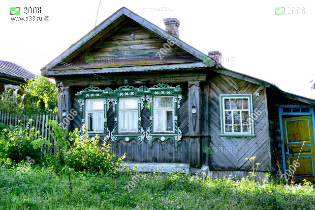 Изба с серым фигурным фронтоном в посёлке Лукново. |