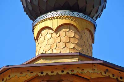 Помимо вышеперечисленного, пристроенные с боков церкви гульбища сделаны на выпусках брёвен и подпорках одновременно.