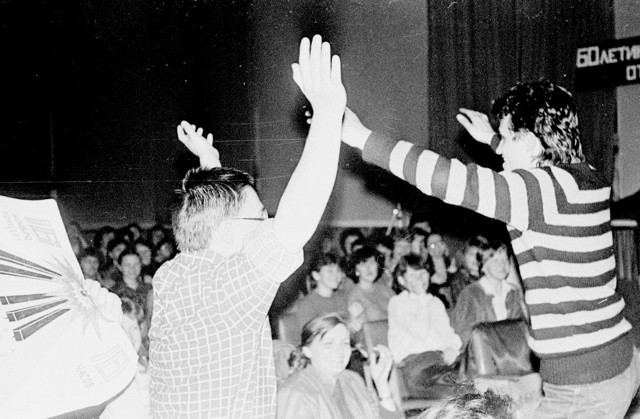 | Вот этот спокойный парень не махал руками, не хлопал, тоже фотографировал, где он сейчас? Справочно: в 1983 году во Владимире на Октябрьском проспекте построили новое здание для КГБ. |