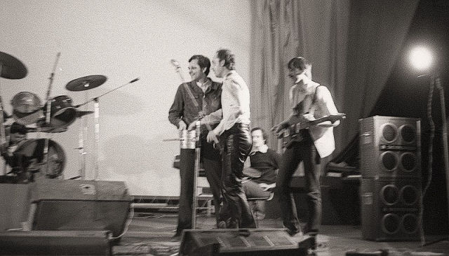 Аплодисменты! Потому, что играют плотно, мощно. Хорошо заходит. Потом эта музыка будет звучать из окон общаг. Особенно песня про свиней, о ней ниже. |